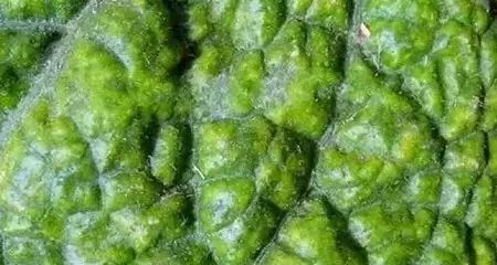 葉片稍有增厚,葉脈間呈淡黃綠色,缺鉬、磷、硫等,主脈周圍有不規(guī)則綠色斑塊,鐵、錳過剩加重缺鉬癥。