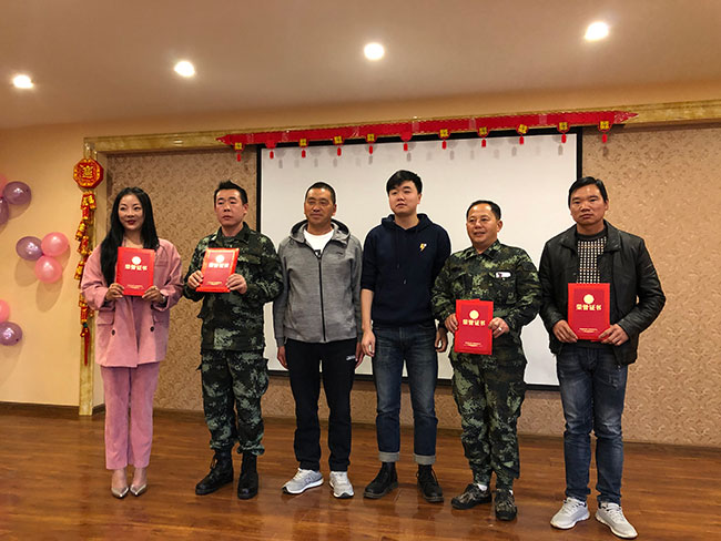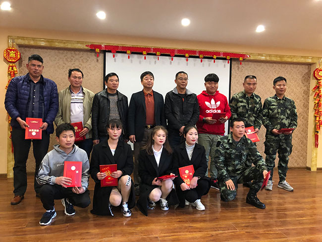 董事長呂培景(第二排左四)與總經(jīng)理馬復坤(第二排左五)和年度優(yōu)秀員工合影